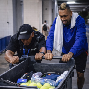 Heartwarming Moment: Nick Kyrgios Stops Leaving the Stadium to Help a Security Guard Push a Broken Equipment Cart After a Long Match.D1
