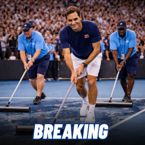 Fans Applaud as Roger Federer Quietly Helps Groundskeepers Clean the Court After a Charity Exhibition Match.D1