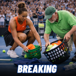 A sudden gust of wind swept across the practice courts, turning what had been a calm training session into an unexpected scramble. Tennis balls rolled in every direction, cones flipped…