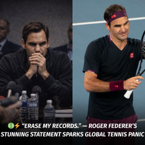 🎾⚡ “Erase My Records.” — Roger Federer’s Stunning Statement Sparks Global Tennis Panic The room expected nostalgia. Instead, it heard something unthinkable. When tennis legend Roger Federer stepped onto the…