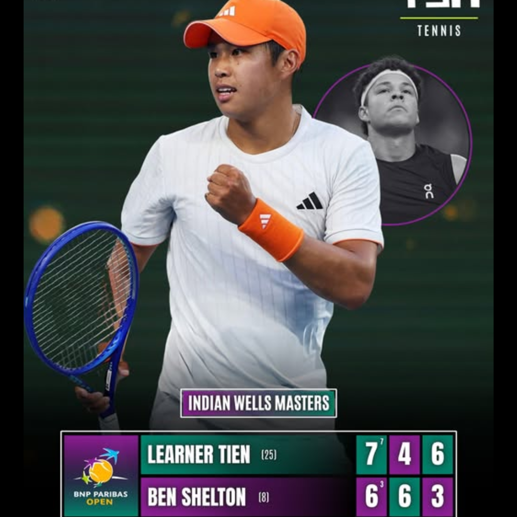 Learner Tien Shocks No. 8 Ben Shelton to Storm Into the Last 16 at Indian Wells Masters